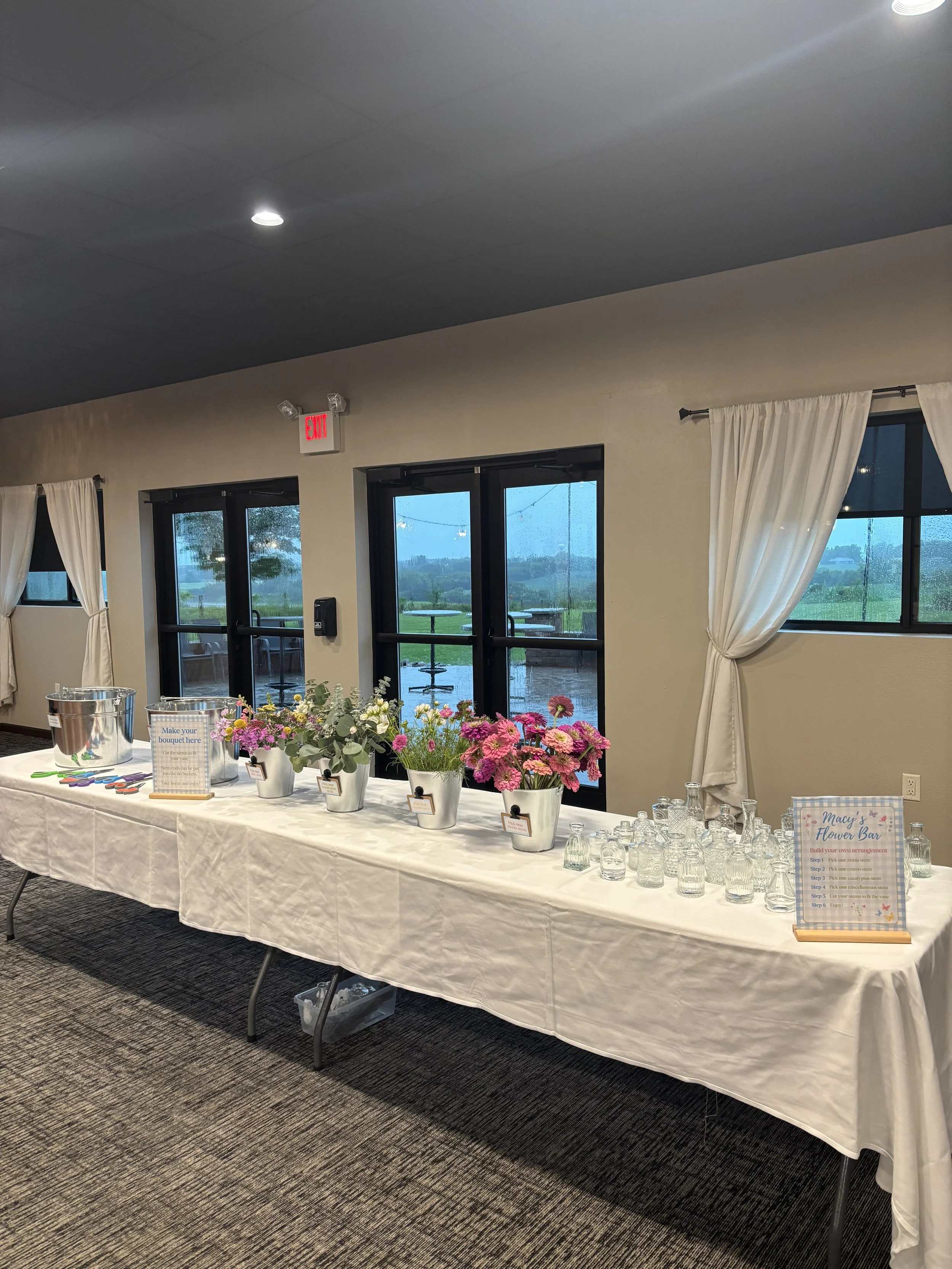 Flower bars have become very popular and are fun to have at parties and events. We have different packages and pricing for certain budgets.